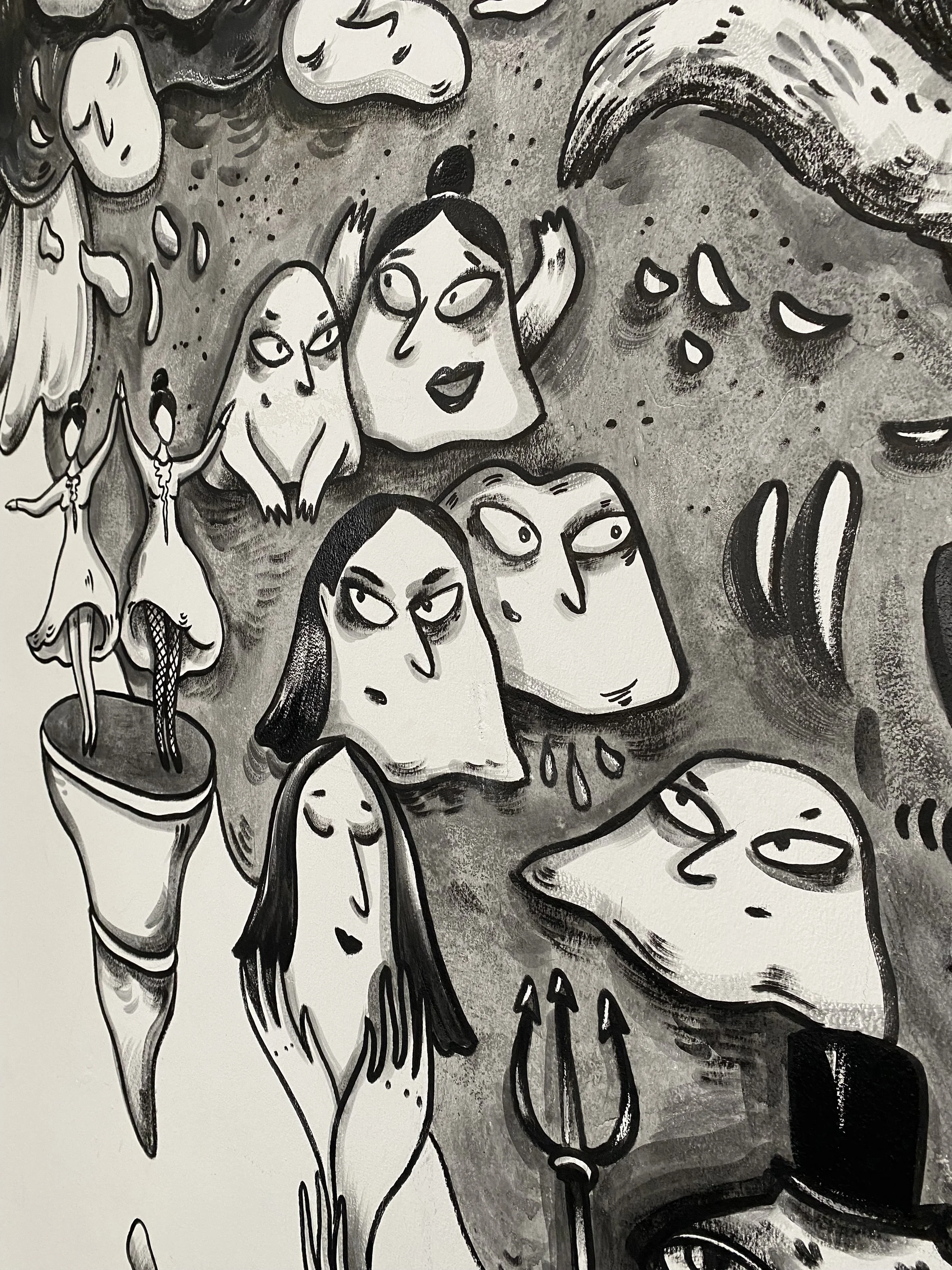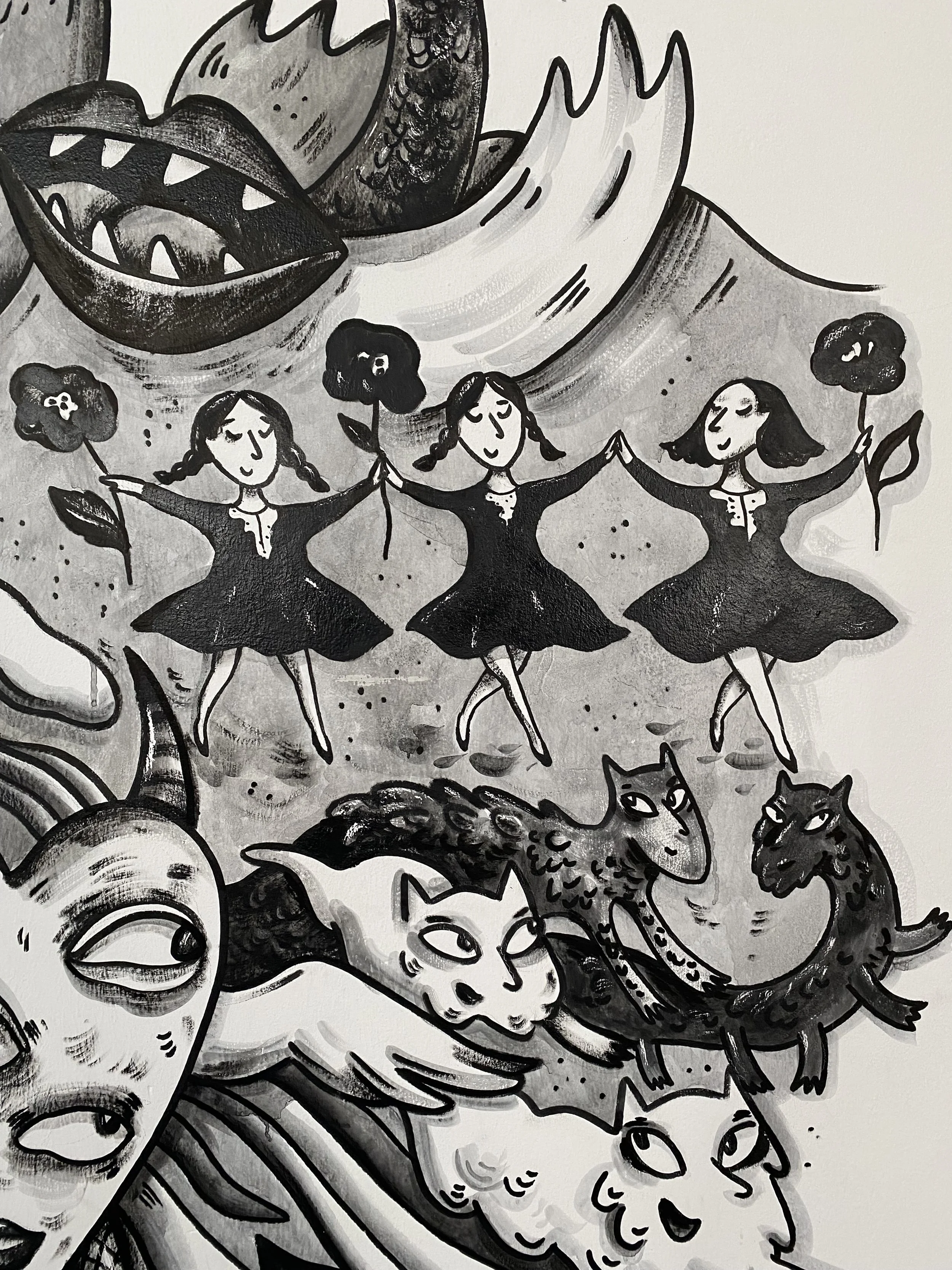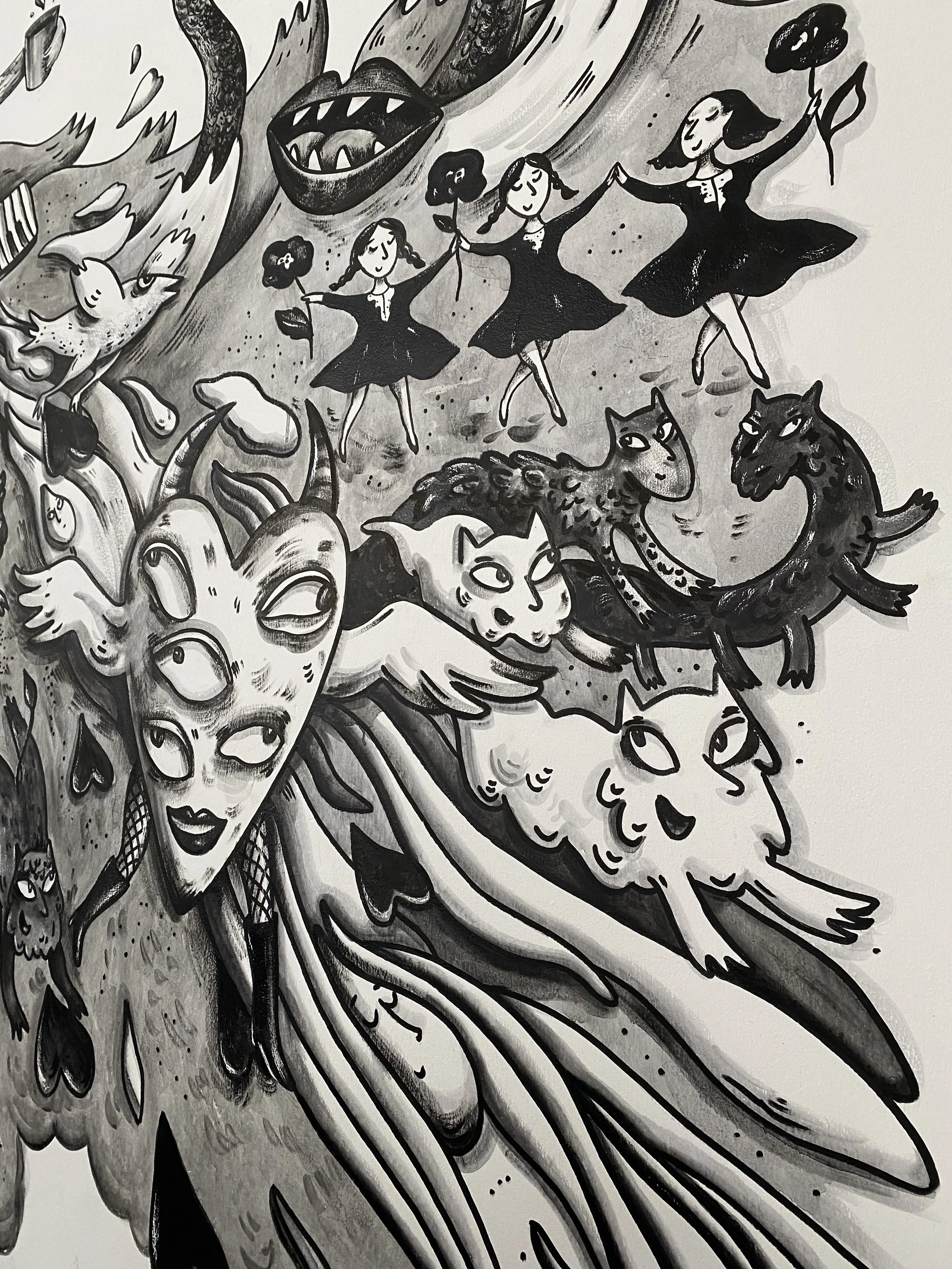 Private apartment / Berlin 2024 A mural created in a private apartment in Berlin in 2024, representing a stream of consciousness—the birth of ideas and the unexpected paths they may take. Request a quote